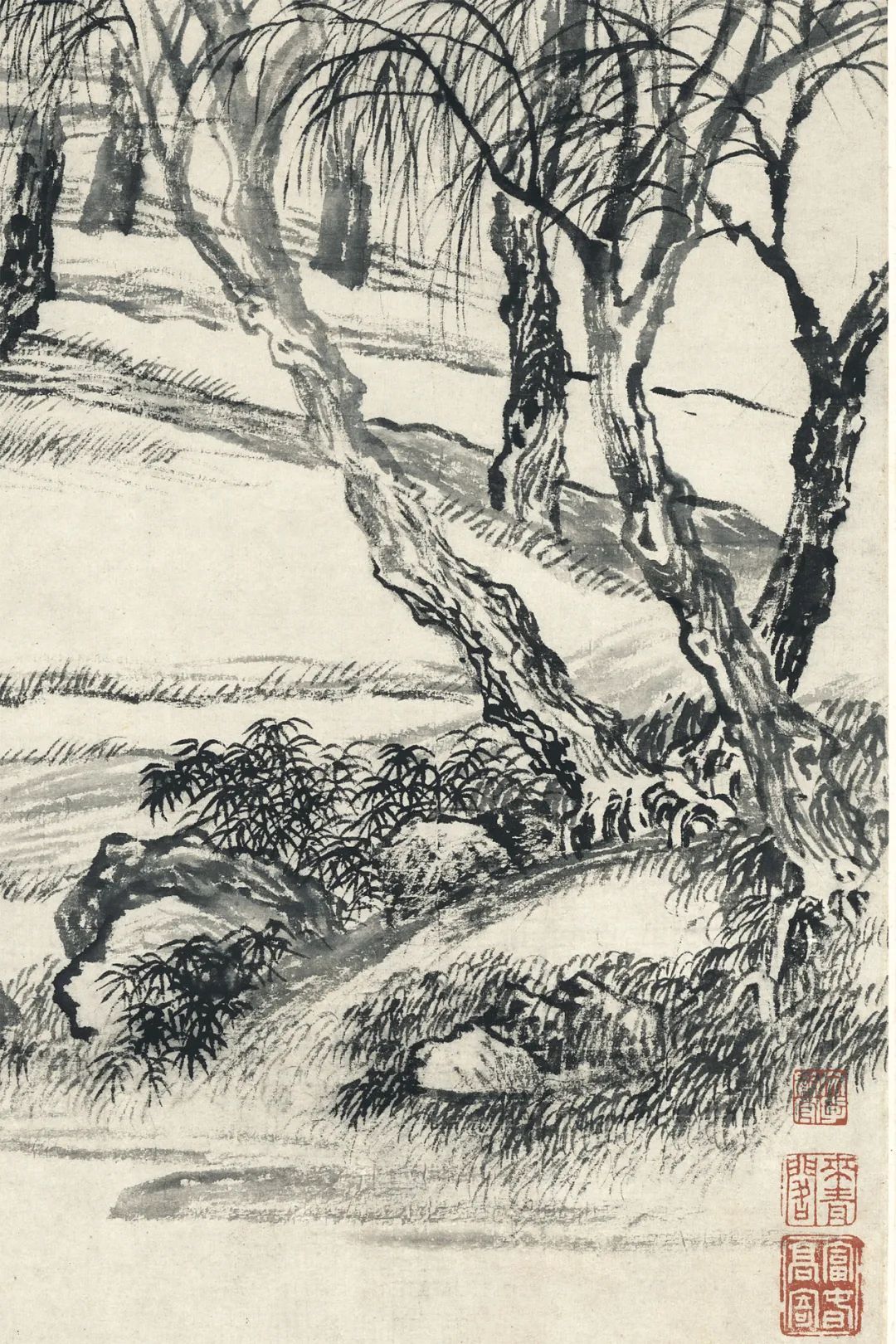 ▲清 王翚《柳岸江洲图》